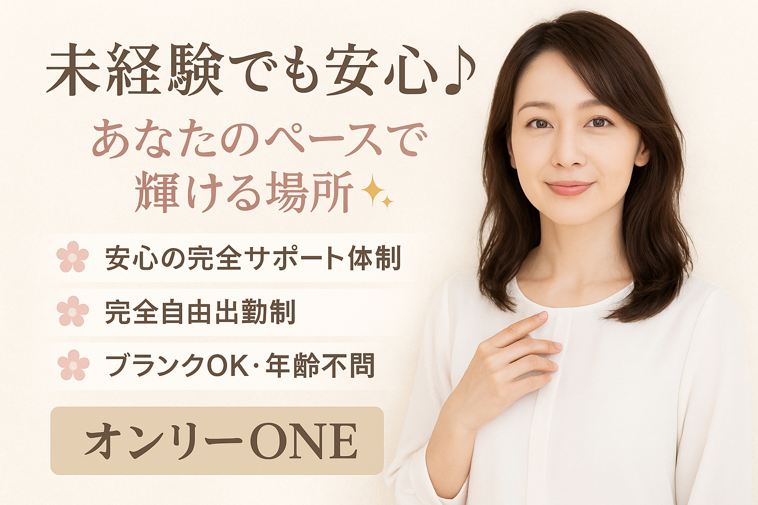 当店には完全に業界未経験から経験者の女性まで、さらには幅広い年齢層のキャストさんが働いています。「初めてだけど大丈夫かな」「今のお店で稼げないけど・・」「数年ブランクがあるけど・・」動機もさまざまです。「稼ぎたい」「目標がある」「好きな時間に働きたい」「遊びやおしゃれを楽しみたい」初めての女性には、もちろん1からアドバイスいたします。わからないこと、不安なことがたくさんあると思いますので、その1つずつをスタッフが一緒に解決して、少しでも安心して働ける環境をご用意いたします。経験者の女性には、当店でどう「稼ぐ」かを一緒に考えましょう!あなたの魅力を最大限に活かせる環境をご用意いたします。少しでも興味があるなという方は、一度面接に来ていただいて、お話だけでも聞いてみて下さい。