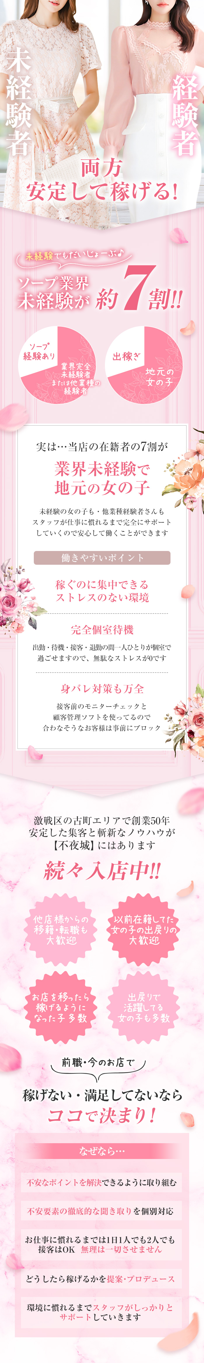 未経験でも安心して稼げるようにお店全体でサポートいたします。