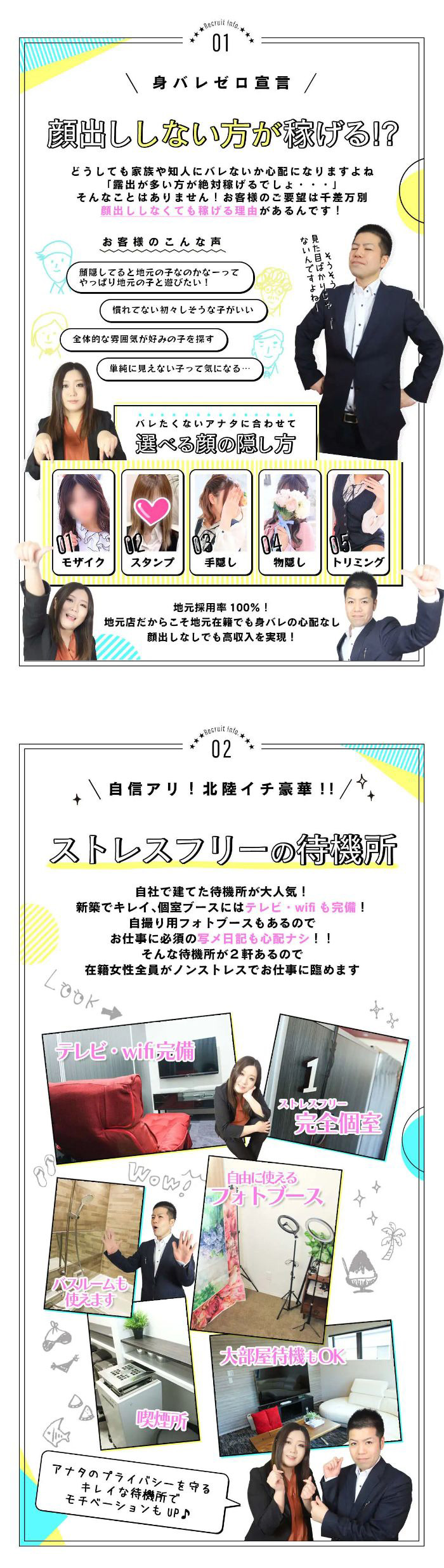 大手だから集客力に自信あり!スタッフさんのサポート体制も万全主に18歳から30歳台の女の子が活躍している同店。北陸屈指の大手グループであることに加えて、宣伝にも力を入れているため、集客力に自信があるそうです。またスタッフさんの人数が多くサポート体制も万全。今回取材した坂本さんは「男性に話しづらいお悩みも女性スタッフに相談できる環境です」と話してくれました。